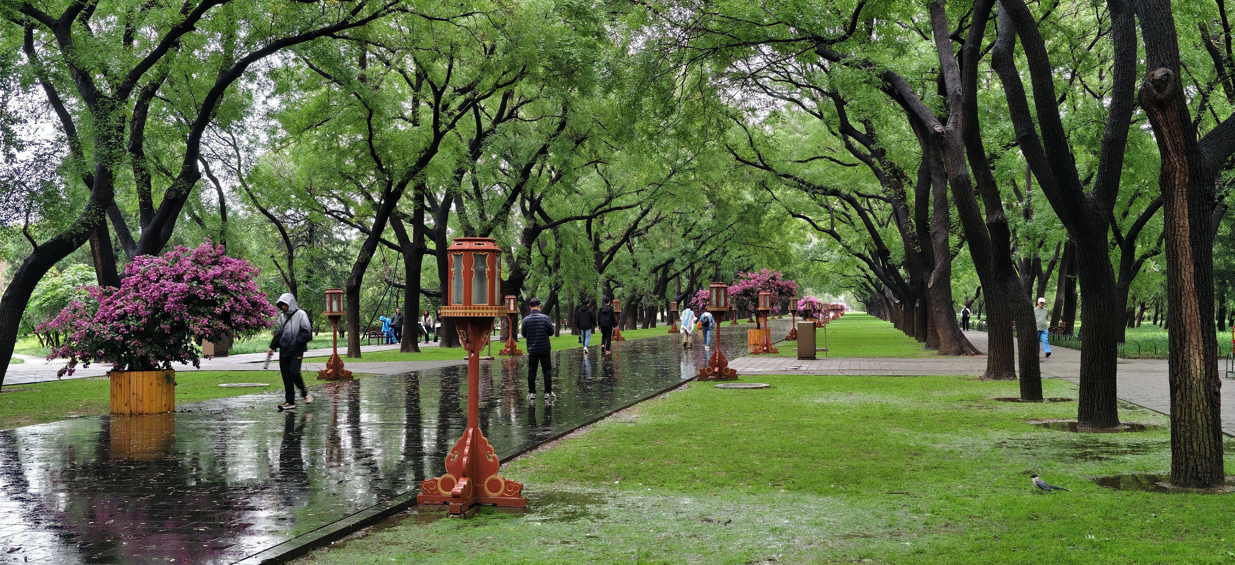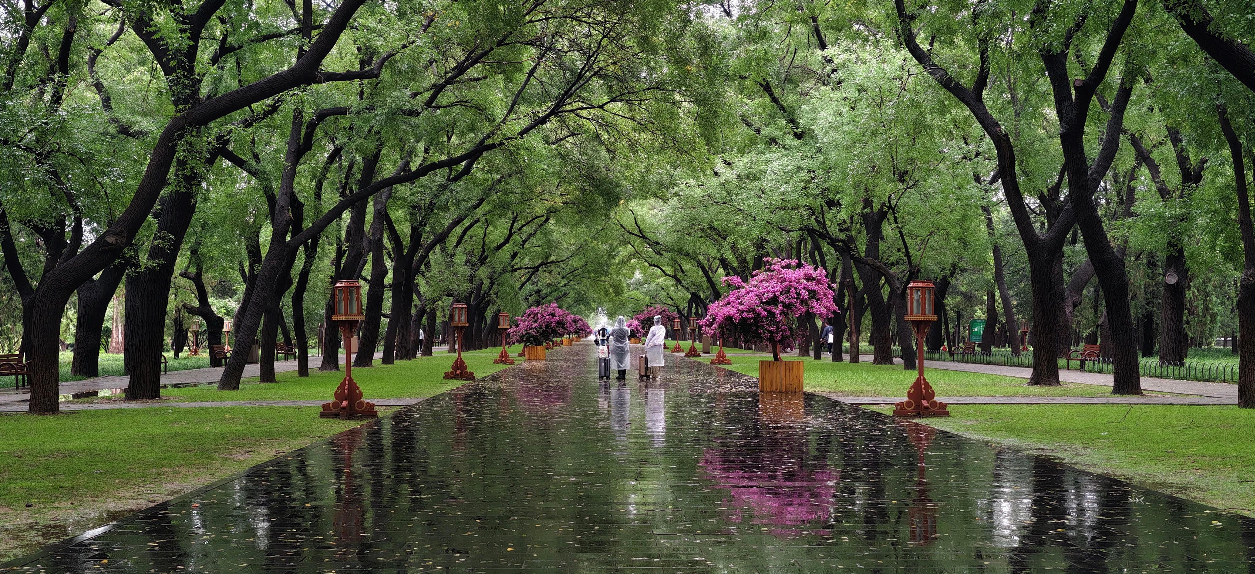 △雨中的天坛公园。
