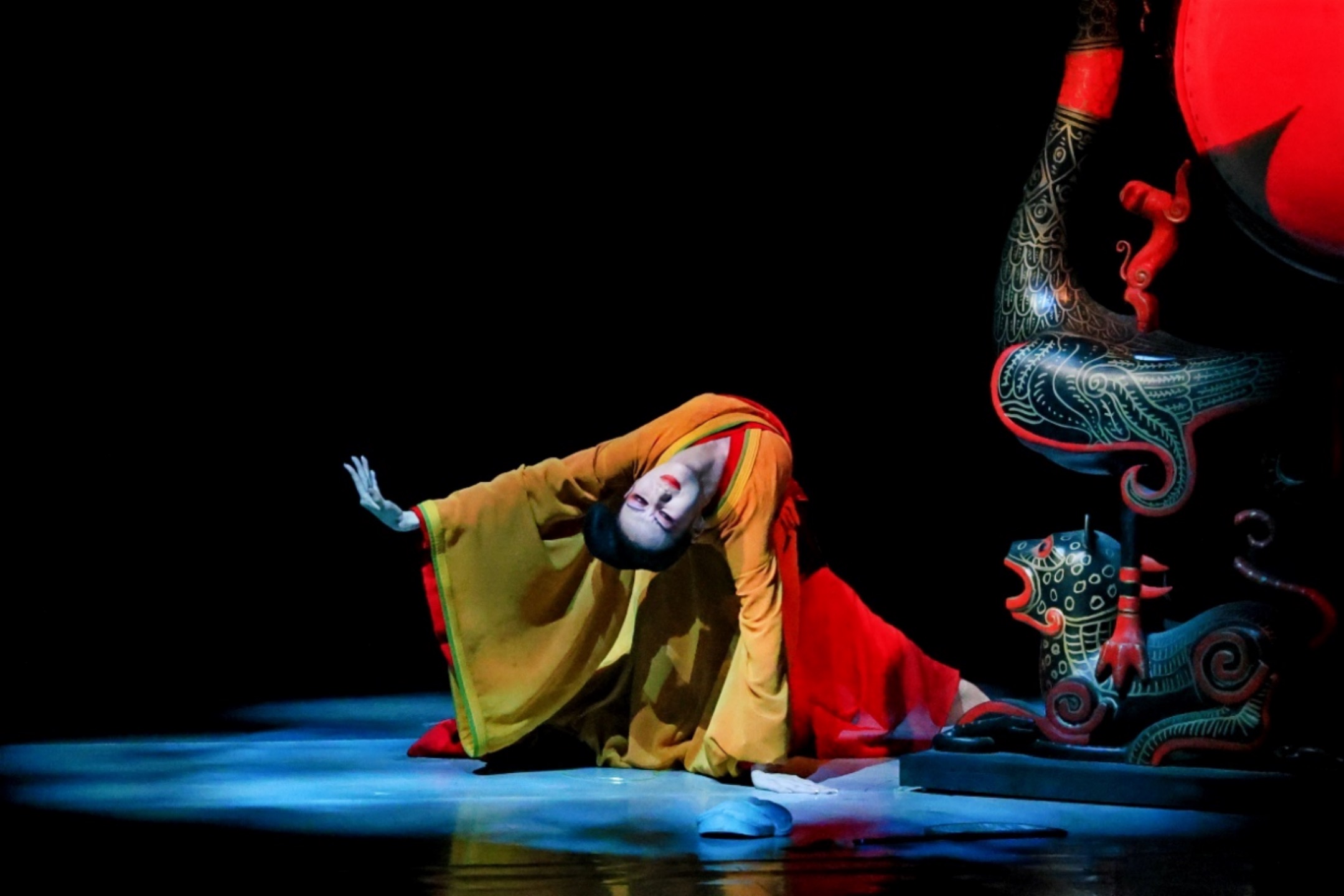 主演黄琛饰演的国君,戴着眼罩完成一系列高难度旋转。他需要在不平衡中寻找平衡,恰如剧中人物在战乱中追求和平的艰难历程。